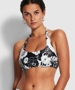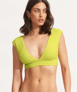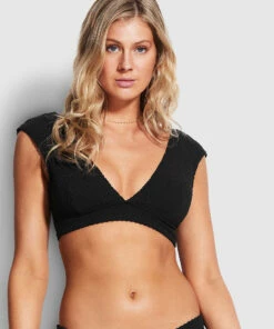 The Pantera Soft Triangle Bikini Top combines a classic cut with a flattering plunge neckline shape. Complete with an underbust band and a soft tie back for support, this triangle bikini top is the perfect form-fitting swim silhouette.Β