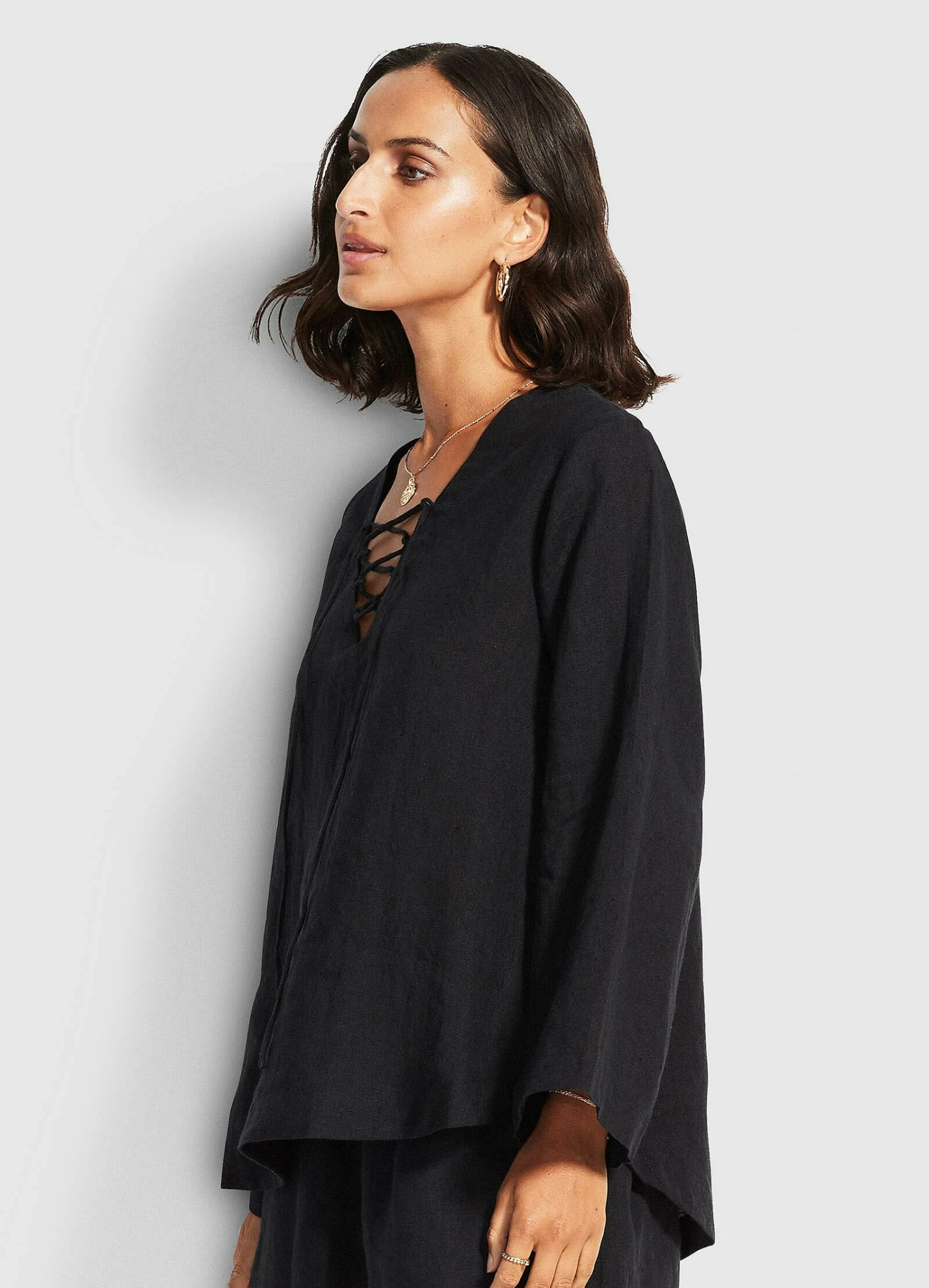 The Beach Edit Harbour Linen Top by Seafolly is a comfortable yet stylish addition to your summer wardrobe. Our Beach Edit range has playsuits, shirts and slip dresses – all perfect for a day at the beach.Β