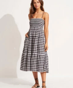 The Seafolly Double Cloth Strapless Maxi Dress has an elegant beach side feel. Combining the strapless look with the side split detailing, this overswim loose fitting style is the ideal throw on summer maxi dress.Β