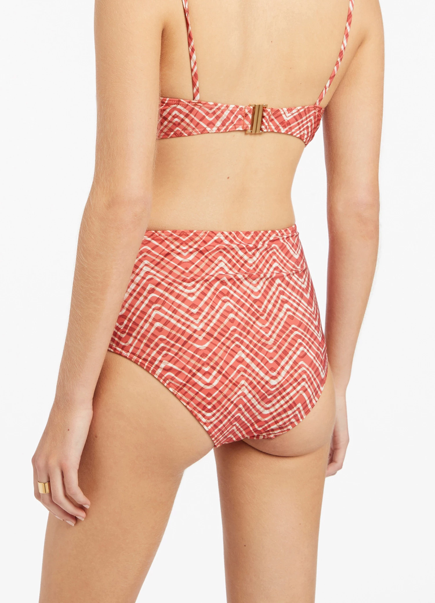 Our Bonita collection is designed with a soft and serene wave geometric print as an ode to effortless feminity. Crafted from our signature Italian fabrication, Bonita swim silhouettes are digitally printed to minimise water wastage, and trimmed with contrasting tortoiseshell inspired hardware for an elevated look and feel.