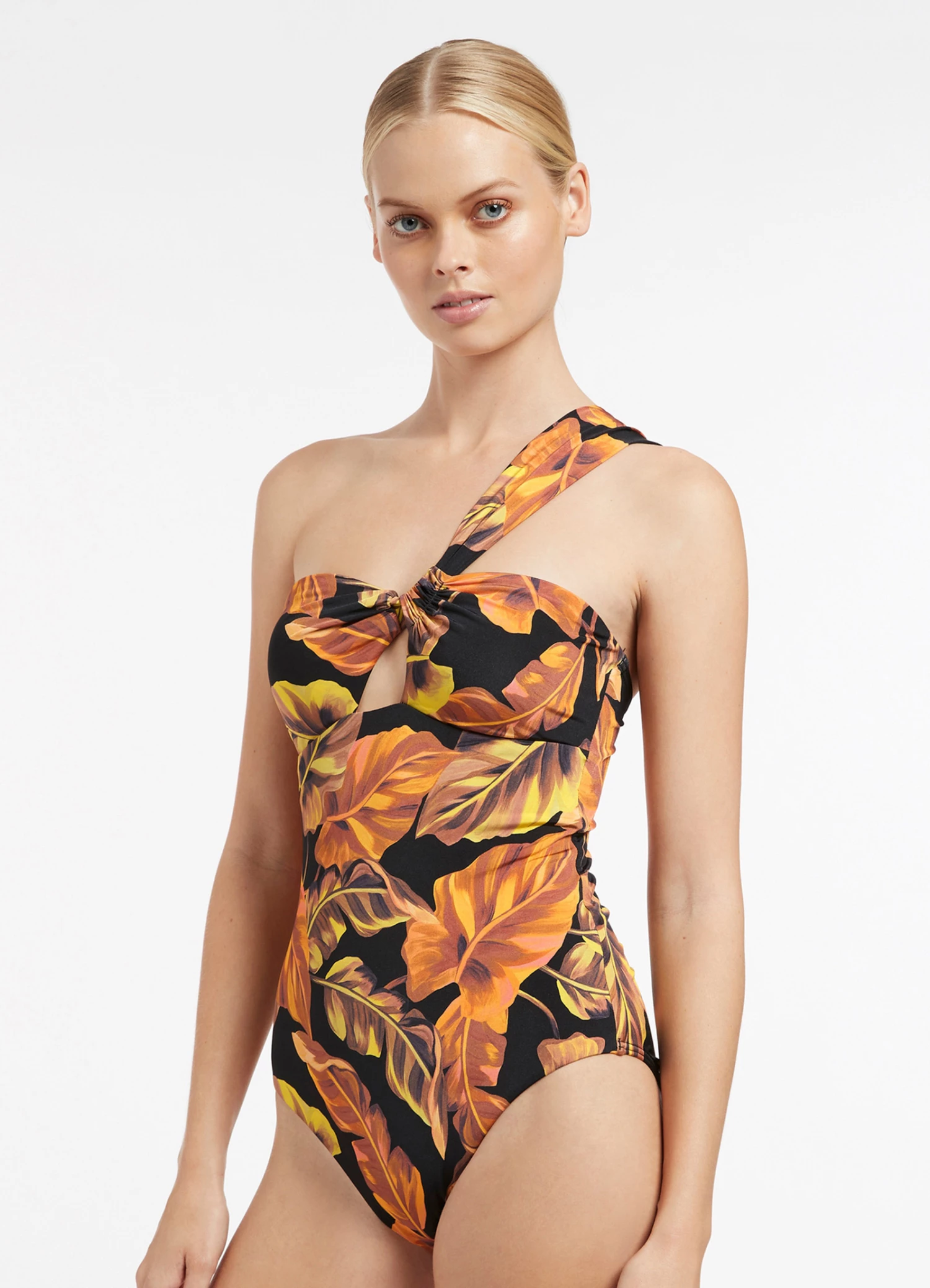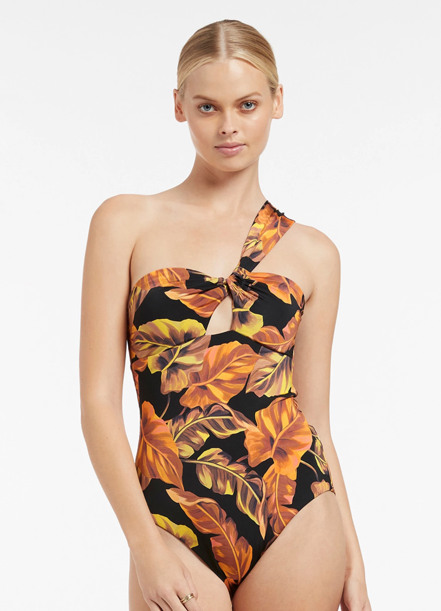 The Palmas Gathered One Shoulder One Piece combines the classic bandeau shape with a contemporary asymmetrical neckline. Complete with removable cups to craft an elevated shape, this one shoulder one piece is a flattering addition to your swim wardrobe.Β