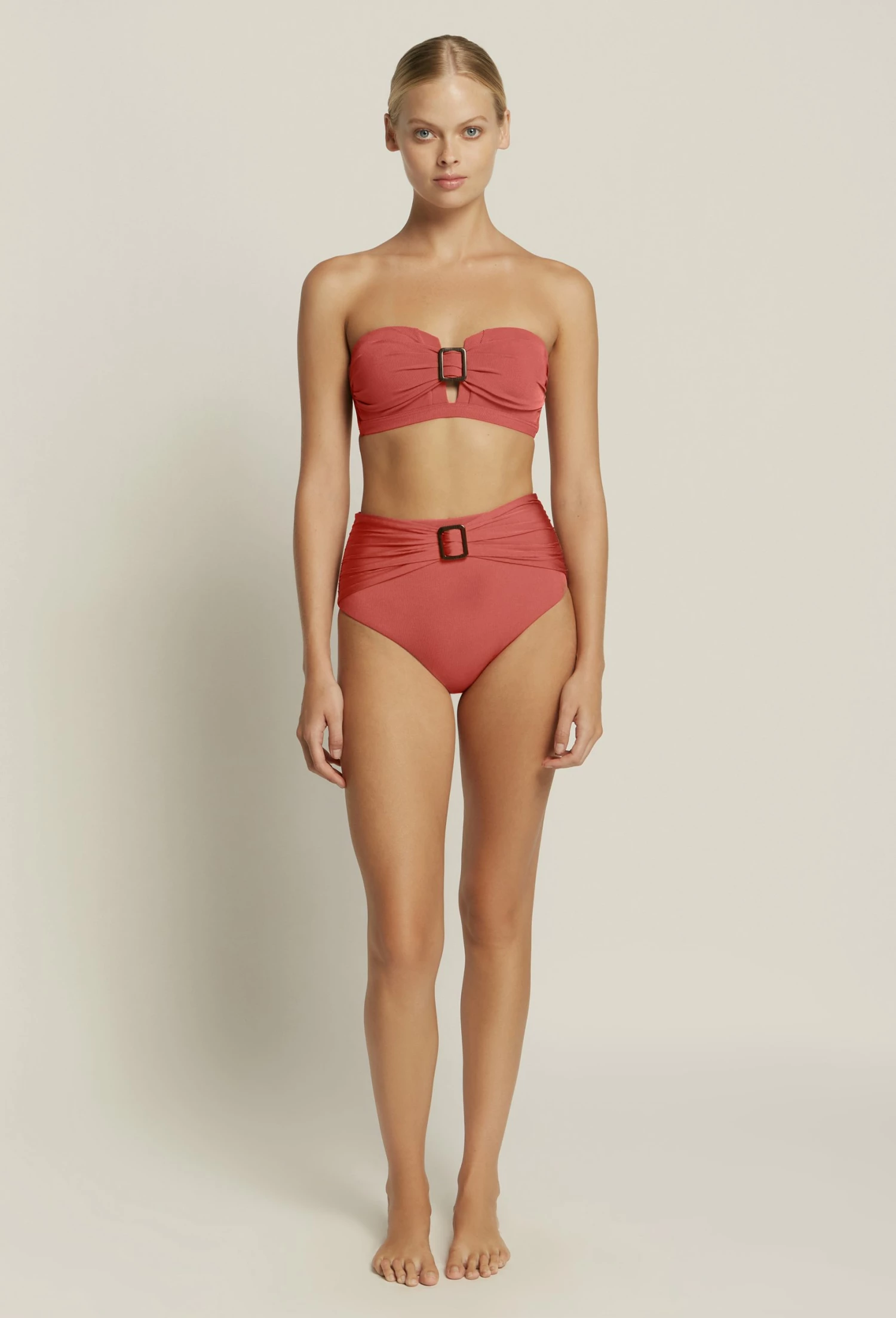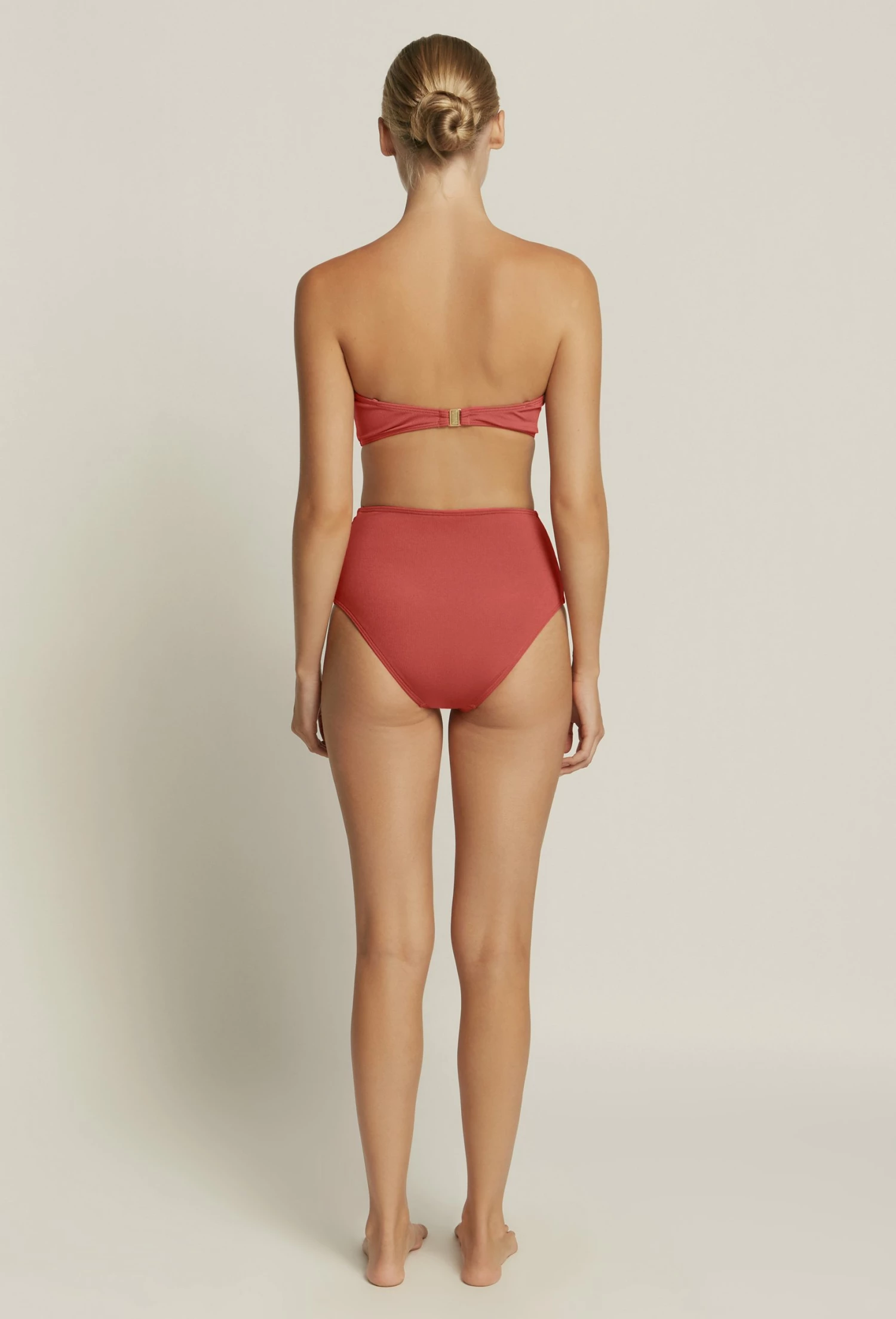 Luxury fabrication offering comfort and sophistication, the AZURE collection ensures a sleek high-end look and unique luminous finish. Combining the extraordinary soft rib knit fabric with classic supportive styles, the AZURE collection ensures elegance with a range of delicate swim silhouettes. This bandeau bikini top is designed with contemporary centre trim detailing and built in support for the perfect shape and style.