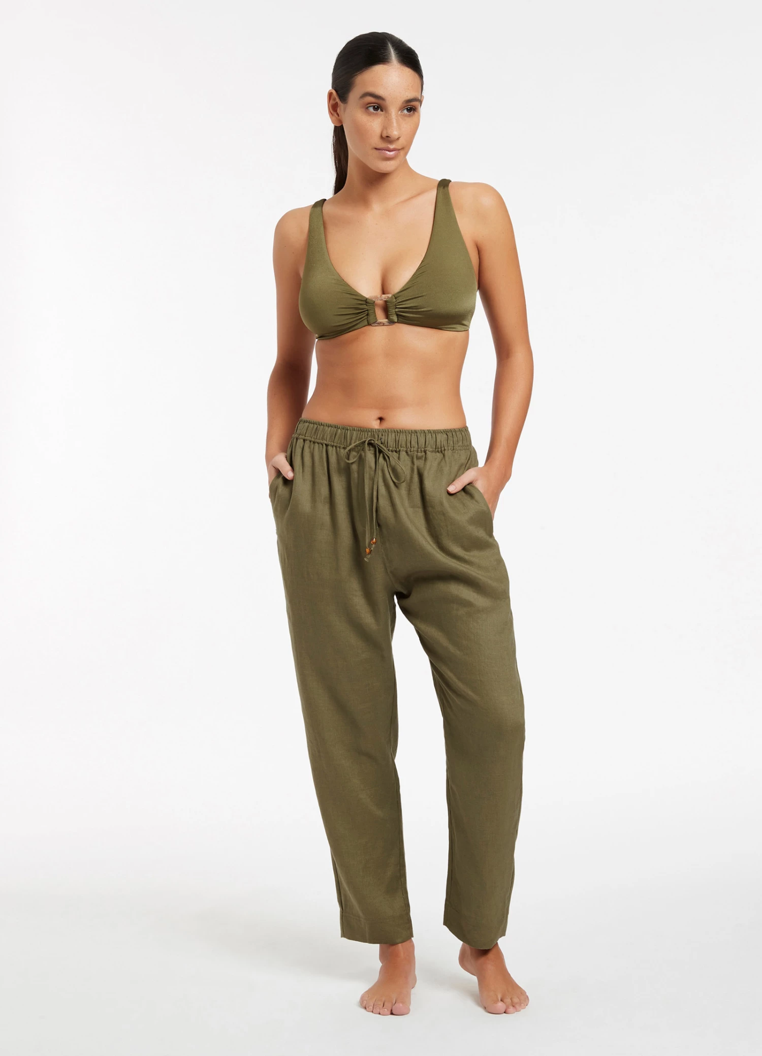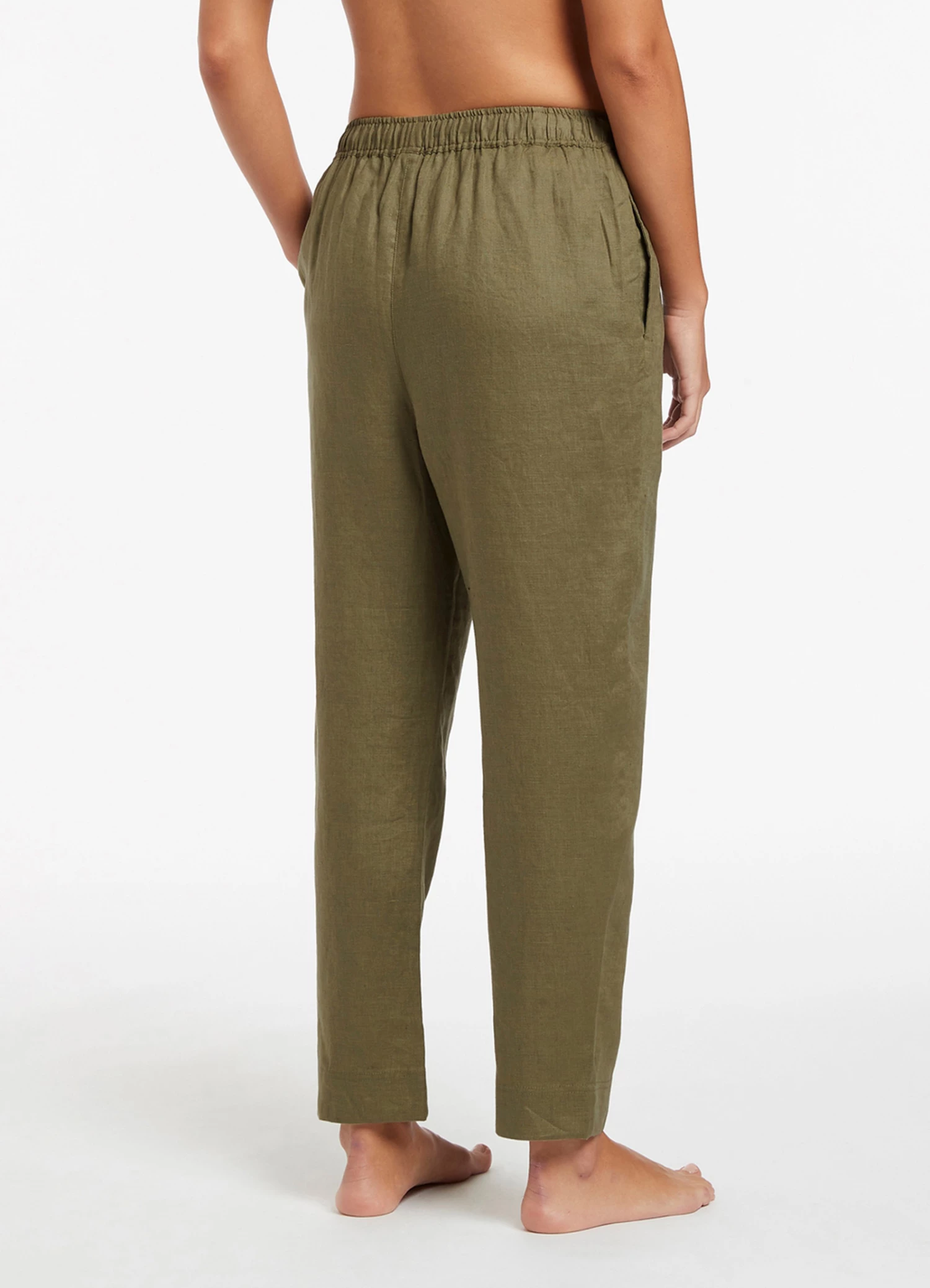 The JETSET Relaxed Pant is designed from crisp pure linen with a soft-to-touch composition. Combining luxury style and comfort, these linen pants are complete with a classic tapered leg, a soft elasticated waistband and lightly detailed with bead trim. Β