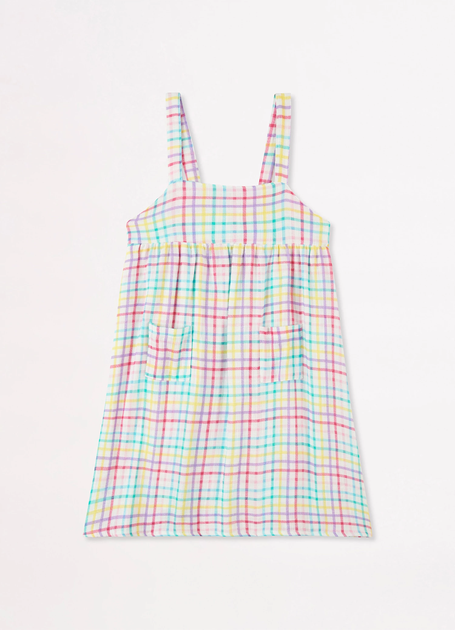 The Portifino Babydoll Pocket Dress for girls is a cotton beach dress perfect for summer days. The gathered skirt, patch pockets and wide straps that tie at the back create a fun and floaty beach dress for girls.Β