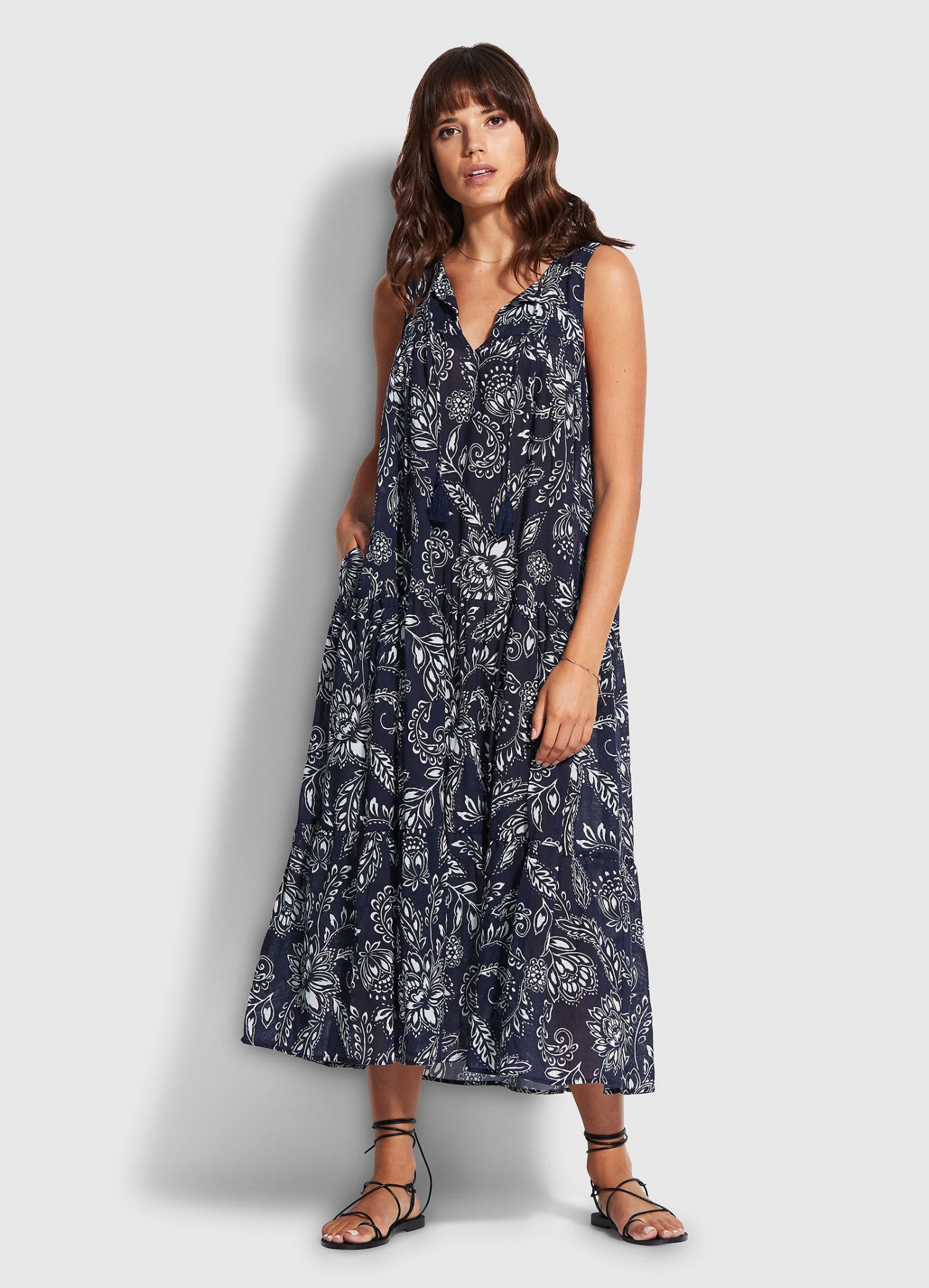 The Folklore Midi Dress is the perfect summer beach dress or cover-up. The classic tiered detailing with tassel detailed ties creates an effortless and weightless addition to your summer capsule wardrobe. Β
