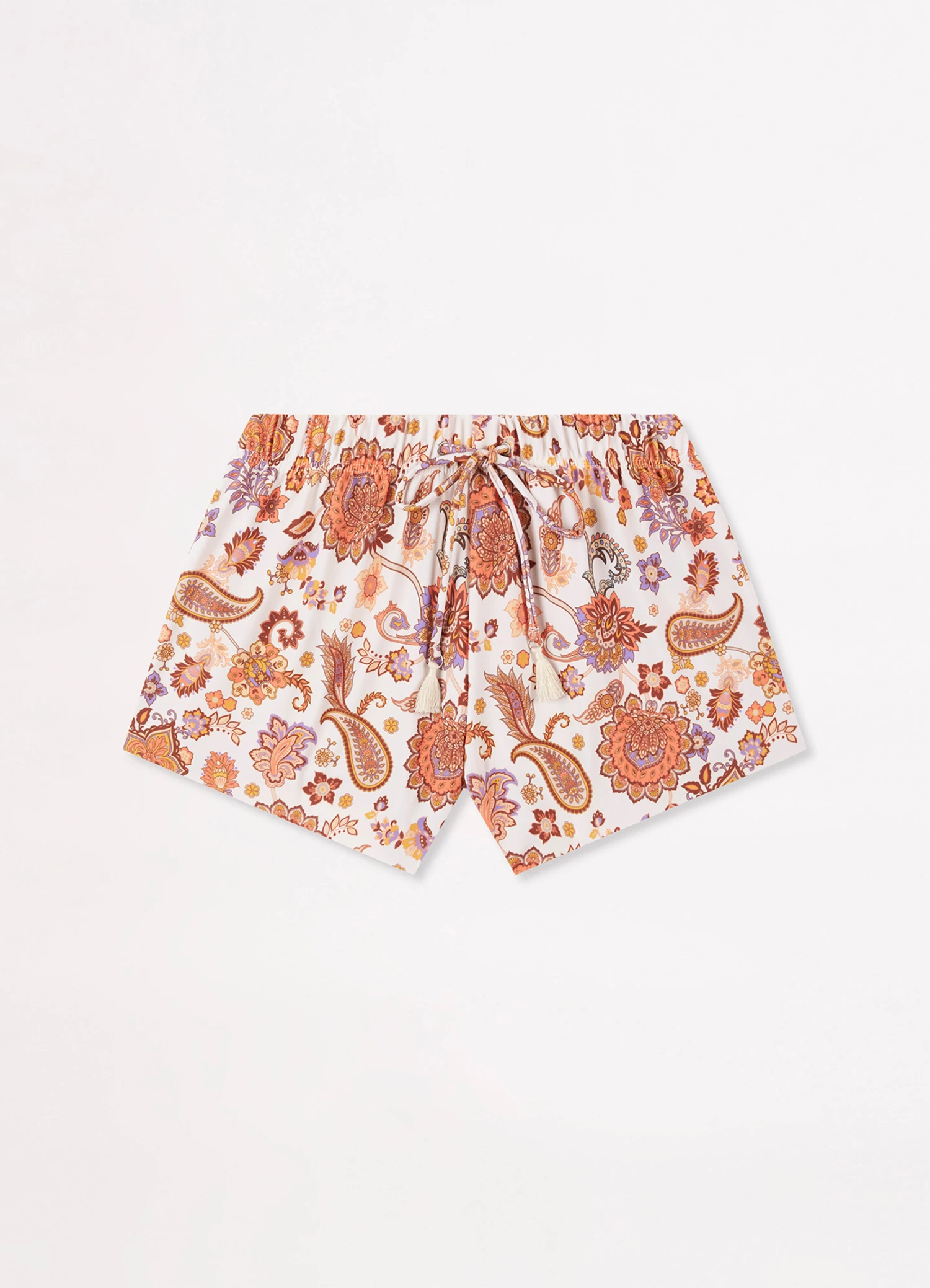 The Retro Fluted Swim Shorts for girls are a comfy beach essential. The elasticated waist and drawcord create an adjustable beach short complete with tassels and a paisley print.