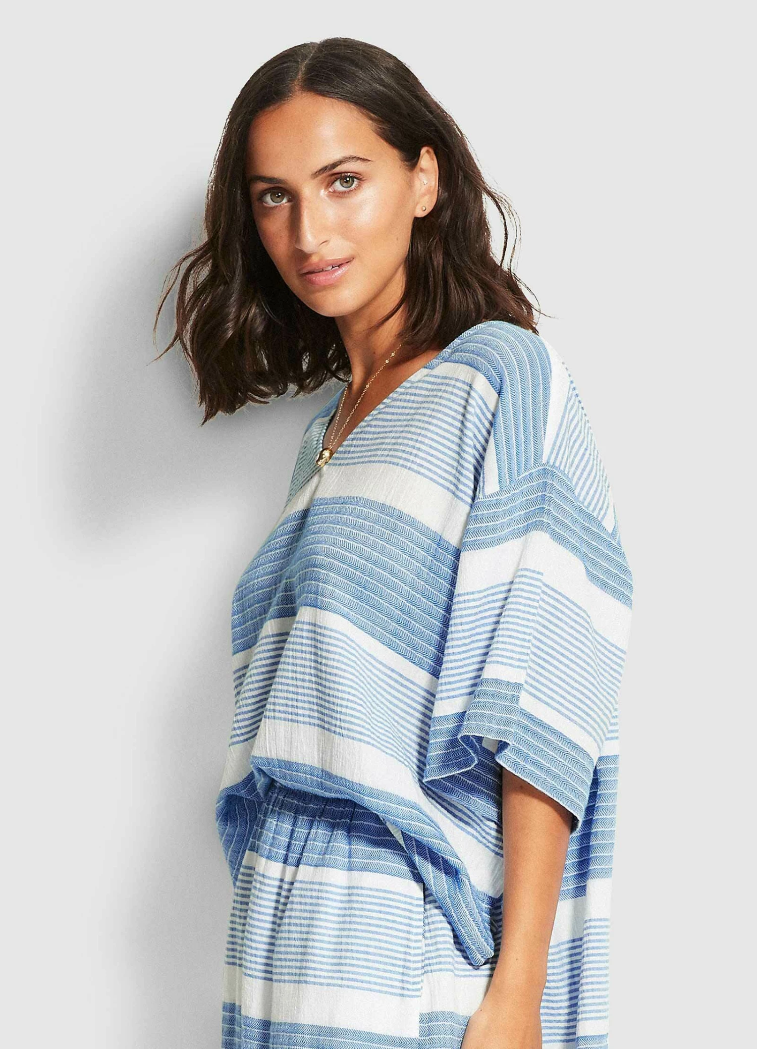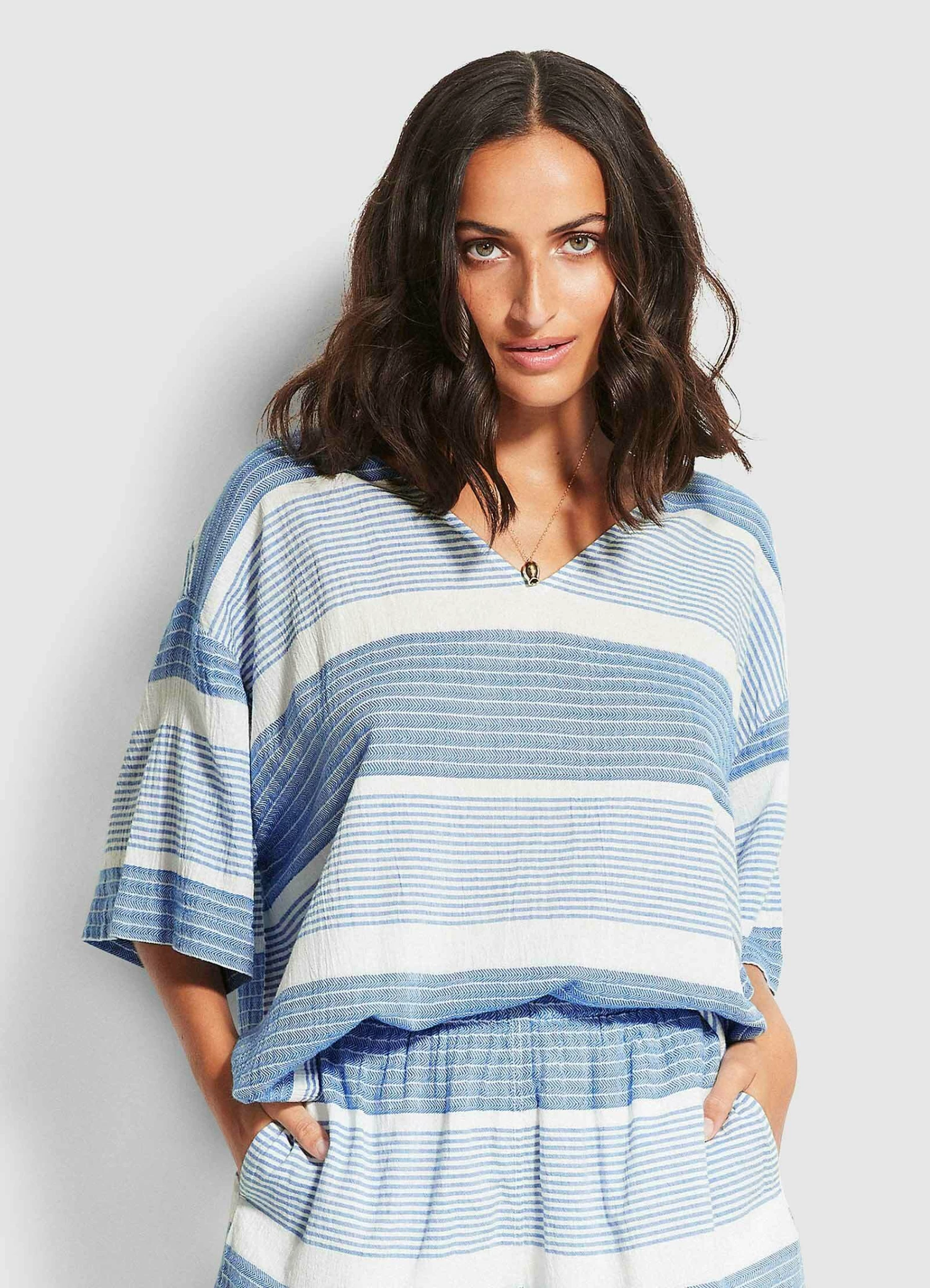 The Seafolly Jacquard Top is perfect for beach wear or an everyday casual look. This pure cotton top features a V neckline and is comfortably loose-fitting, offering an easy to wear style.