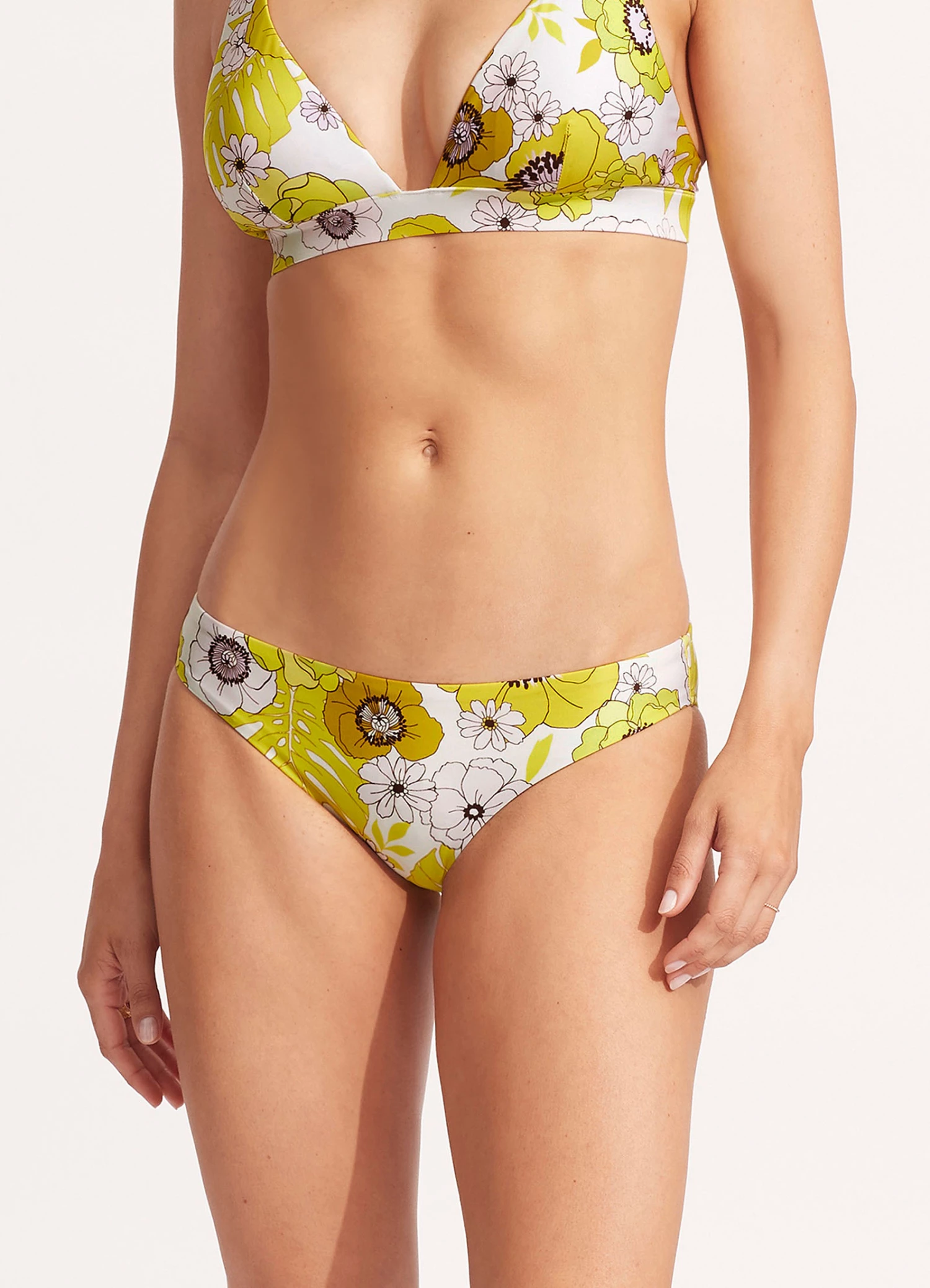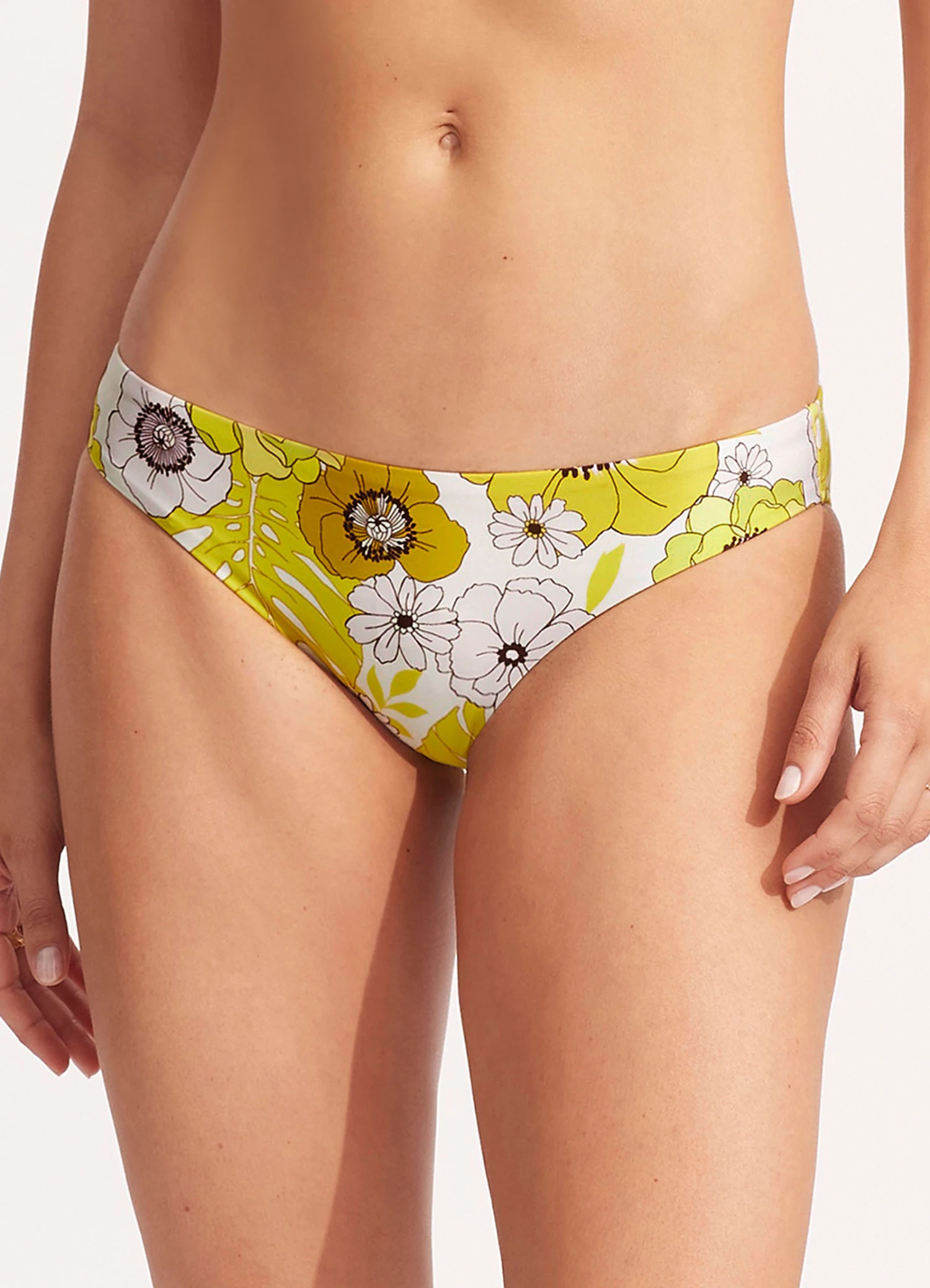 The Summer Of Love Hipster Bikini Bottom is a low rise pant with regular coverage crafting a comfortable swim style for summer. The retro floral print and shiny fabrication crafts a classic fit bikini bottom for all day comfort. Β