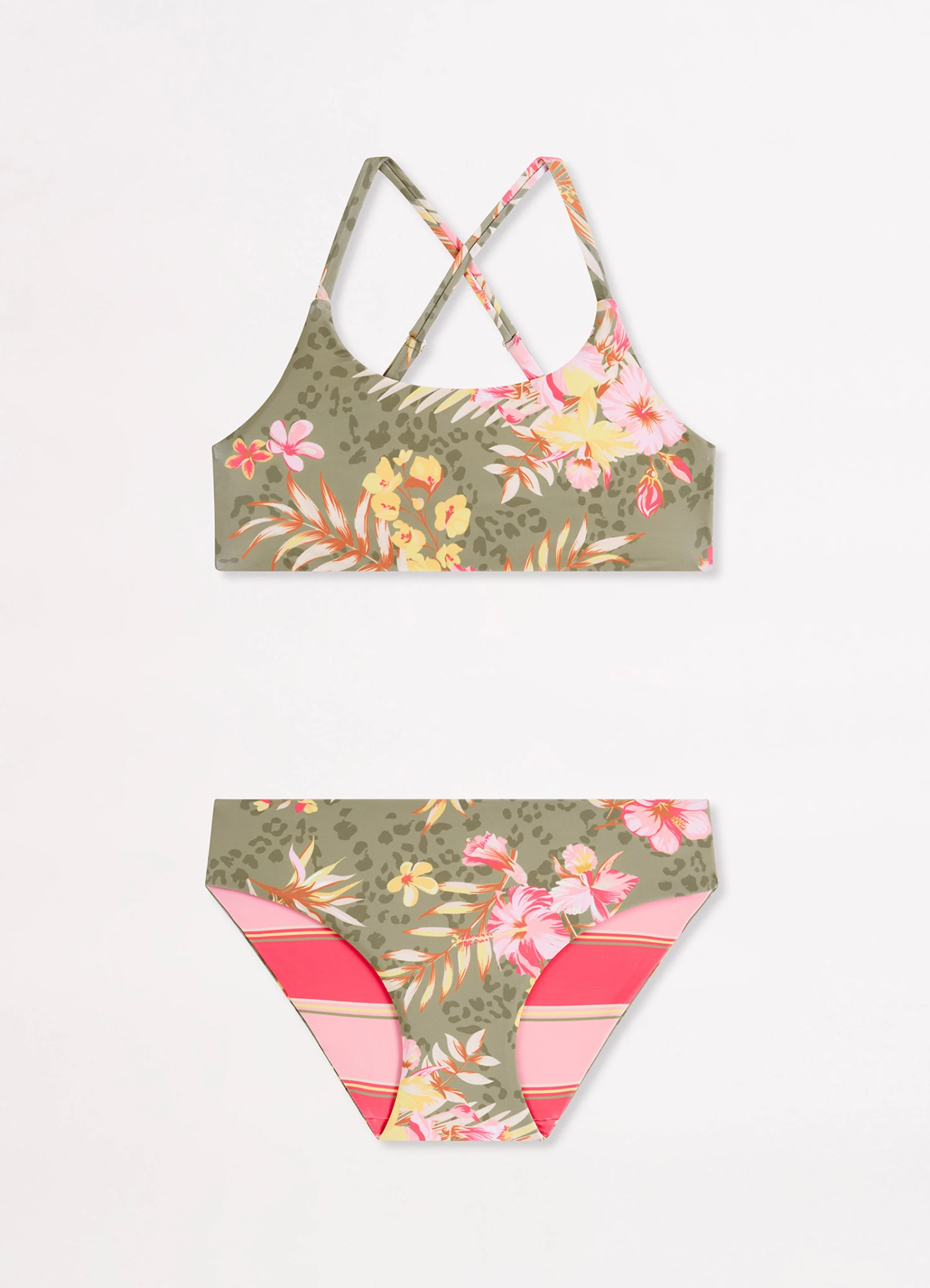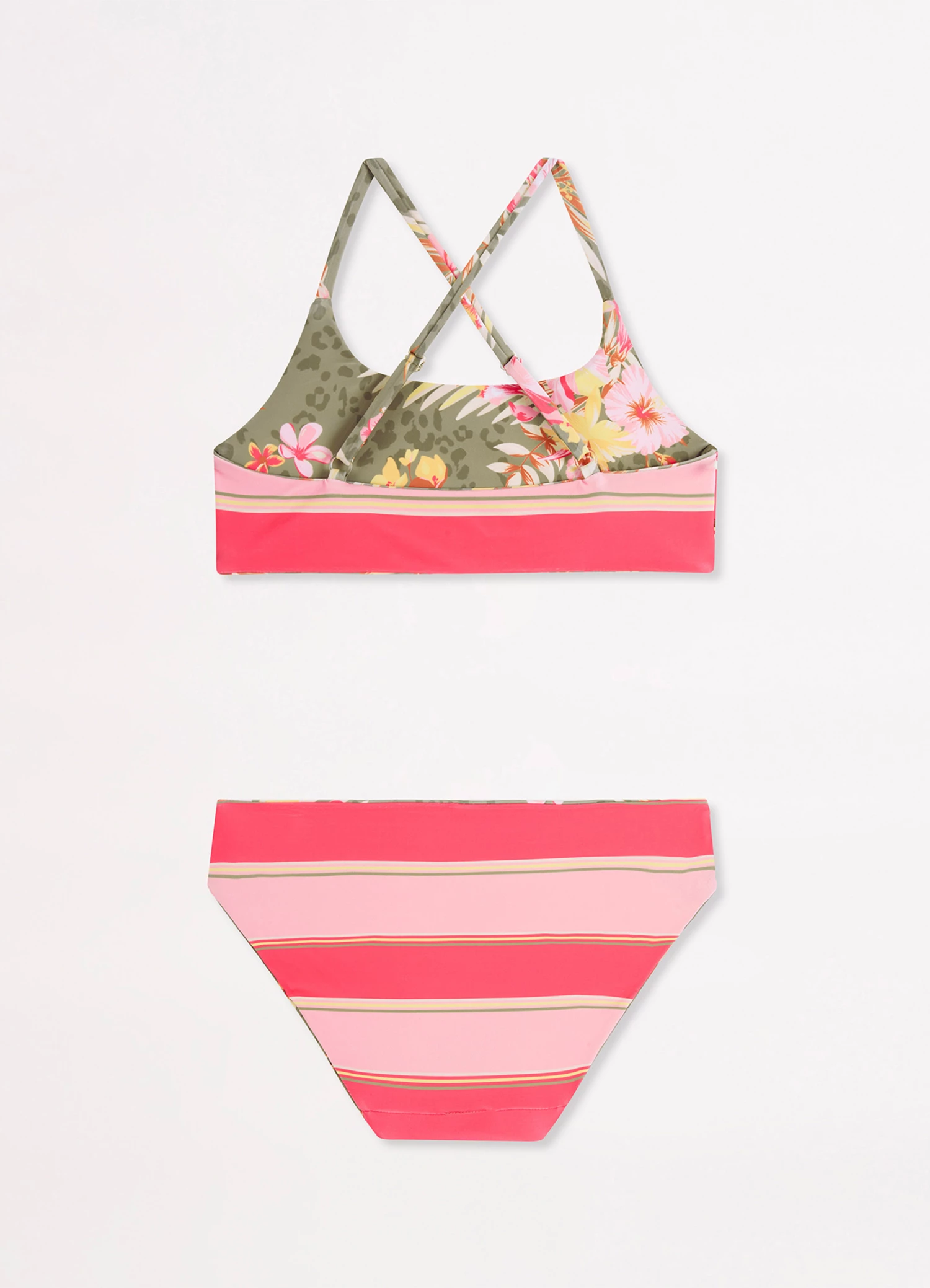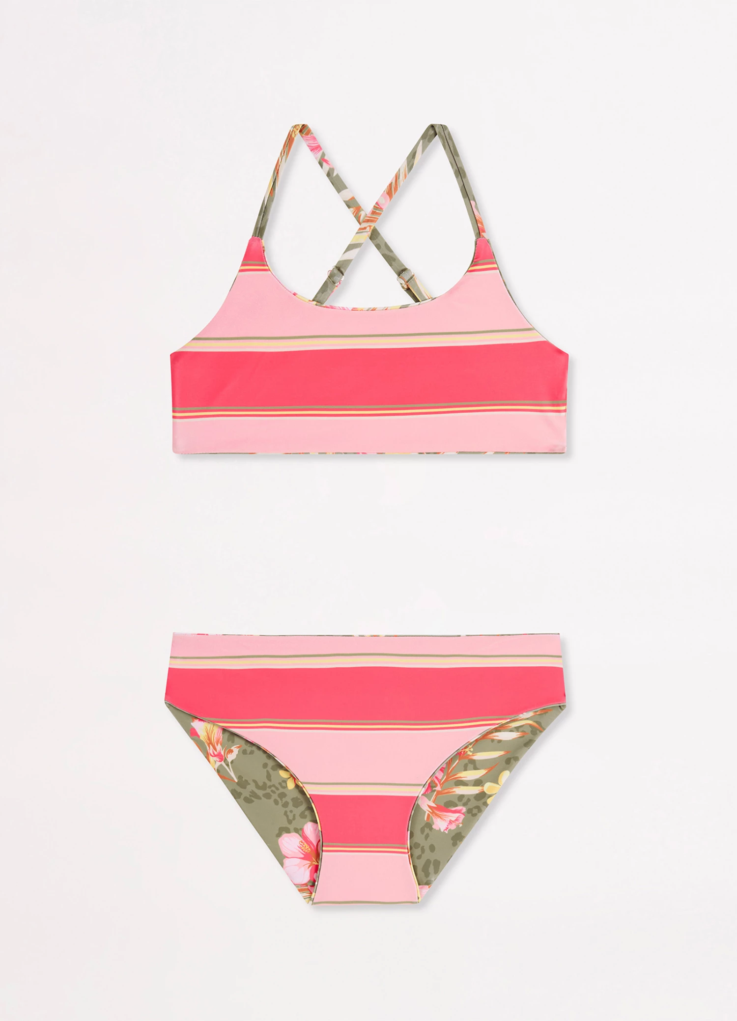 The Seafolly Summer Holiday Reversible Bikini for girls is the perfect matching swim set for beach days. Featuring a reversible print on both the bikini top and bikini bottom, this matching set is a fun and comfortable summer essential.Β