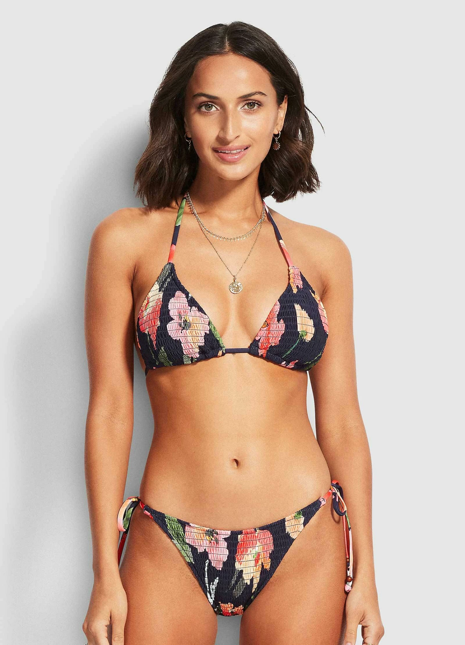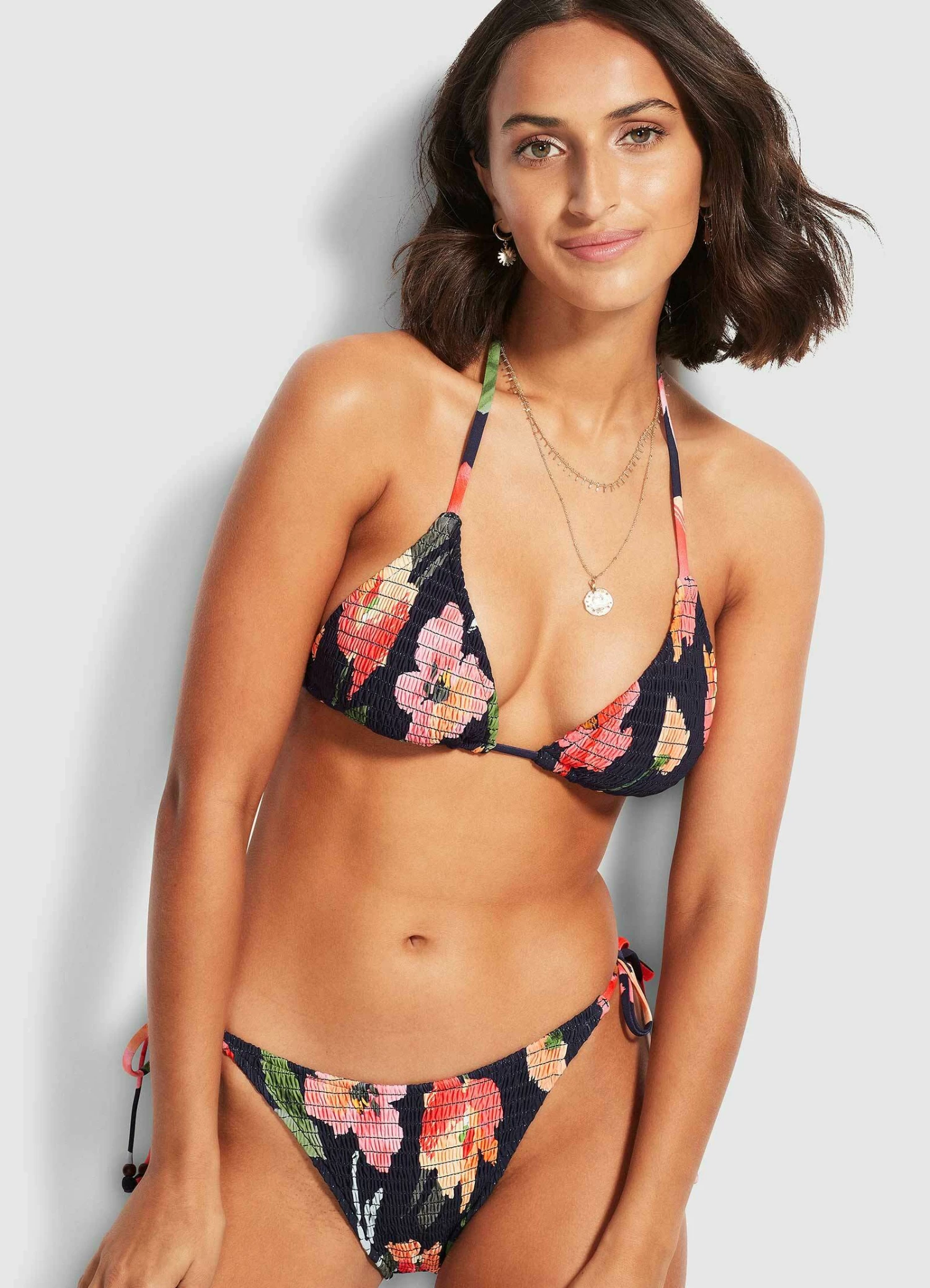 The Summer MemoirsΒ Shirred Tie Side PantΒ by Seafolly captures a nostalgic essence and a nod to vintage-inspired florals. This story is filled with splashes of watercolour, creating bright abstract blooms.Β