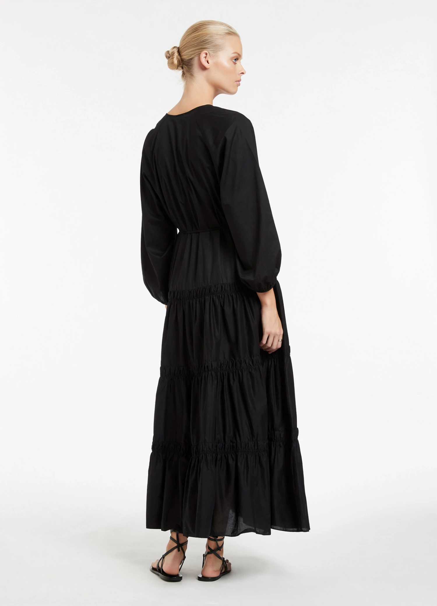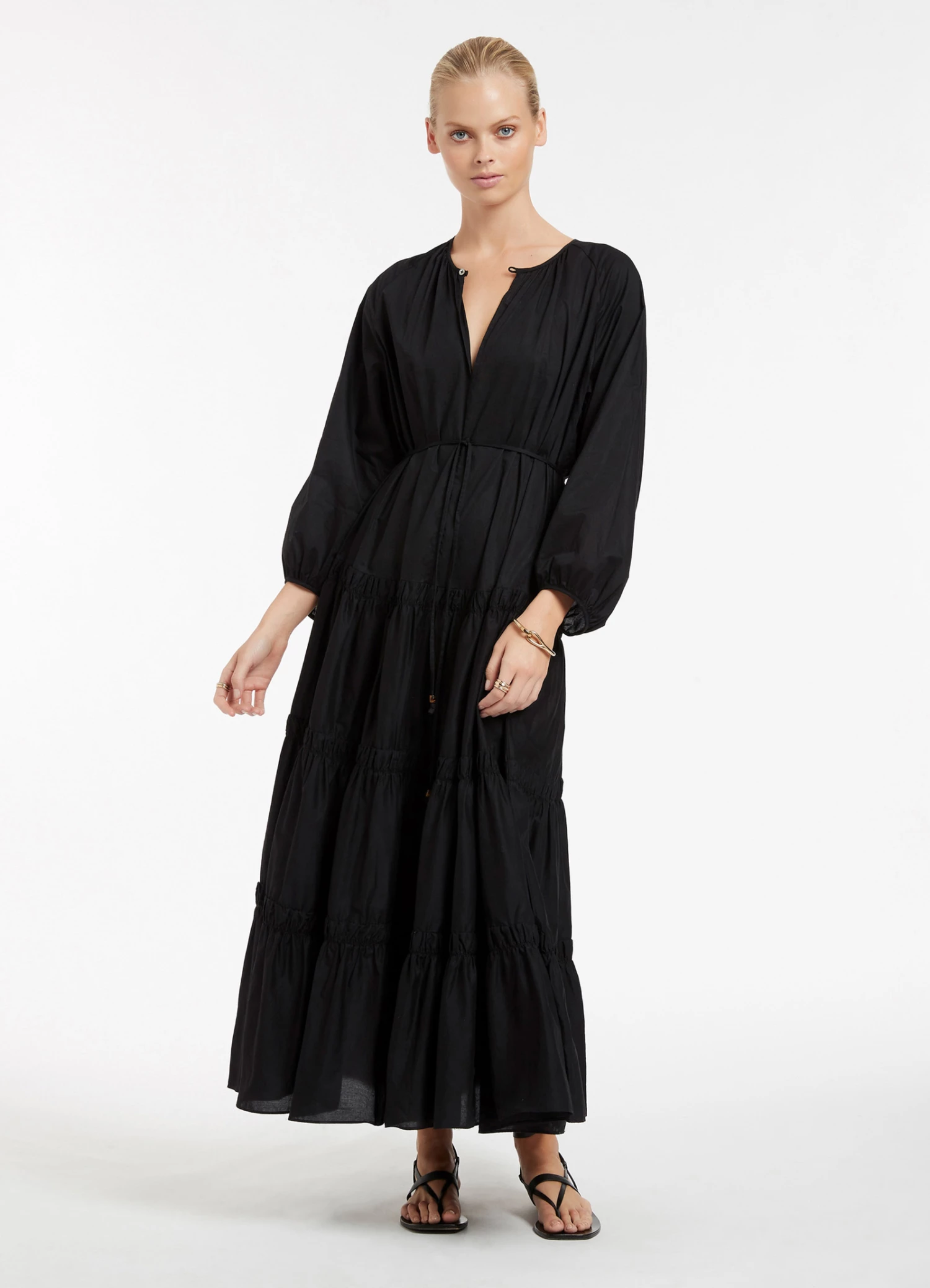 The JETSET Tiered Maxi Dress is crafted from crisp cotton-poplin with a soft to-touch composition. A tonal belt adorned with bead trim cinches the silhouette before graduating into a full hem skirt β the perfect warm weather maxi dress, designed for effortless luxe style.Β
