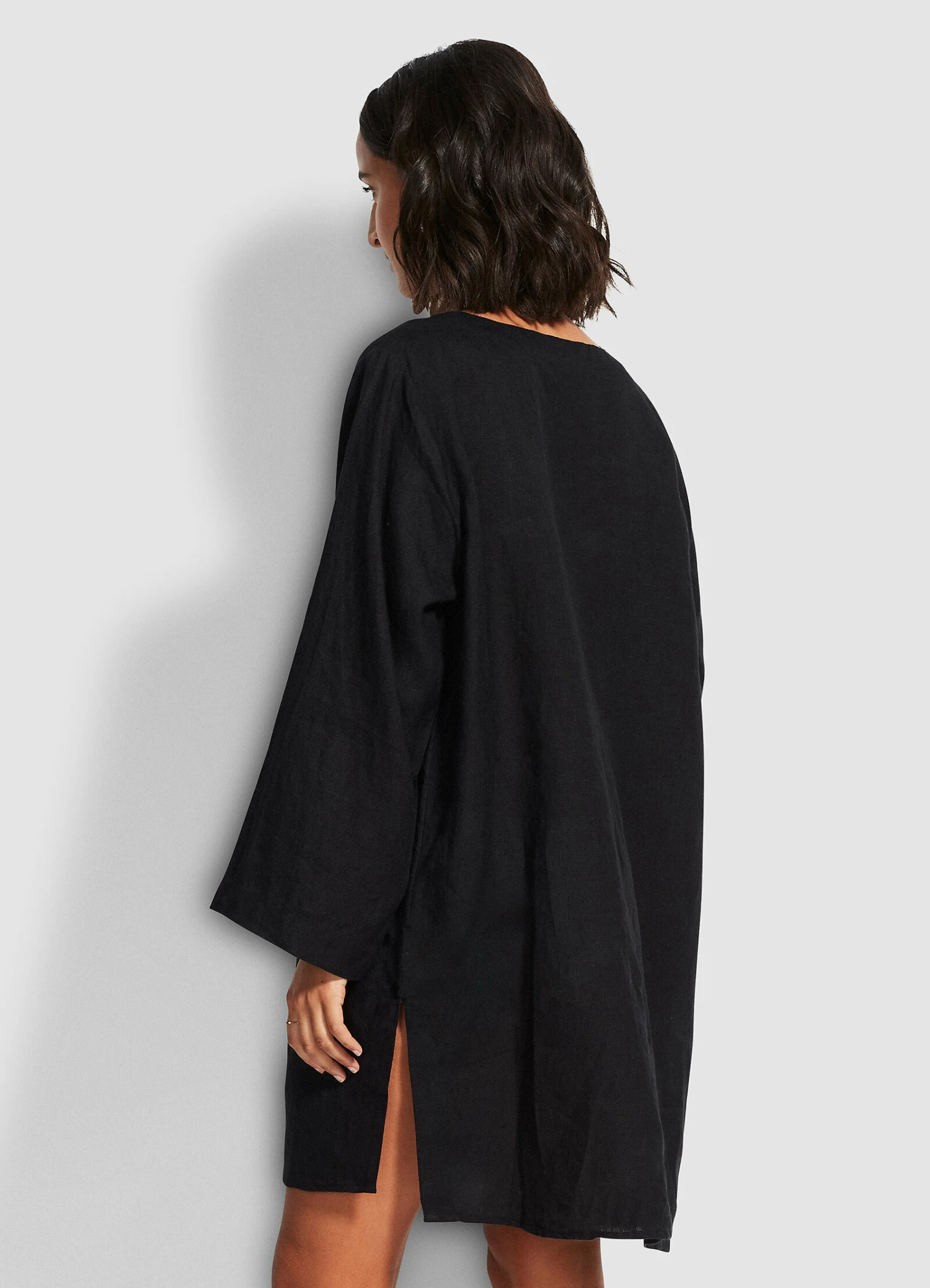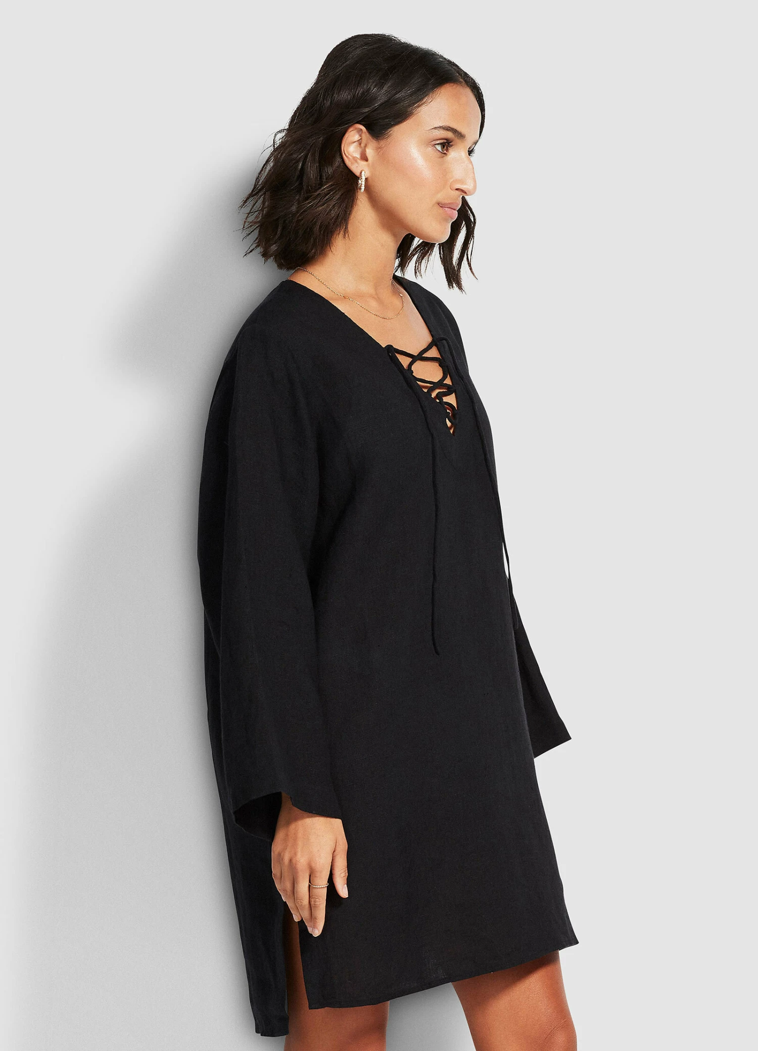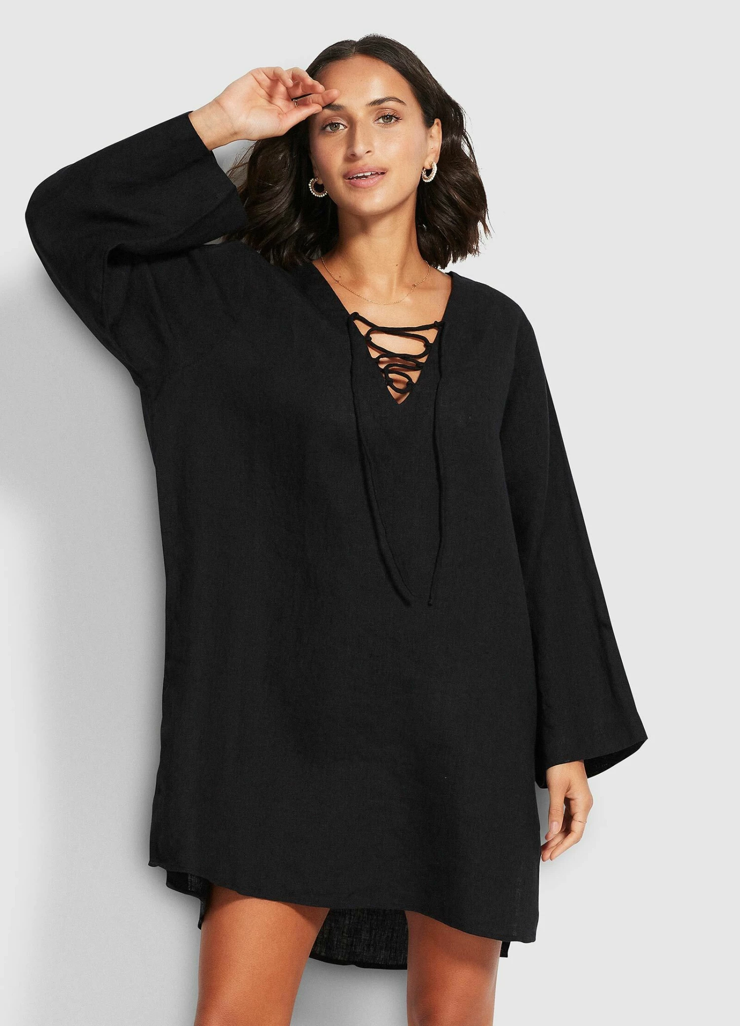 The Beach Edit Harbour Linen Cover Up by Seafolly is a comfortable yet stylish addition to your summer wardrobe. Our Beach Edit range has playsuits, shirts and slip dresses – all perfect for a day at the beach.Β