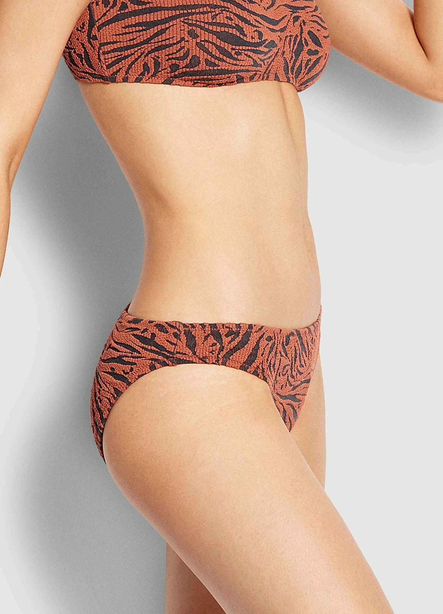 RUST COLOUR: Alice is wearing a size 10 swimsuit. She usually wears an AU 8/S, is 172cm tall, has a 73cm bust, 89cm hips and a 61cm waist.