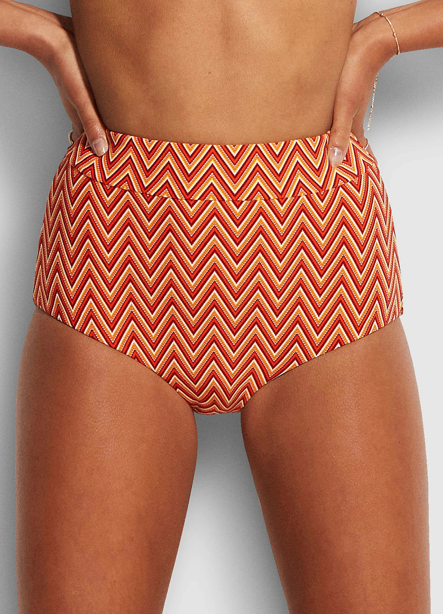 The Seafolly Cleo High Waisted Pant is designed for comfortable flattering shape. These vintage inspired high waisted bikini bottoms are the perfect piece for a vibrant summer wardrobe.